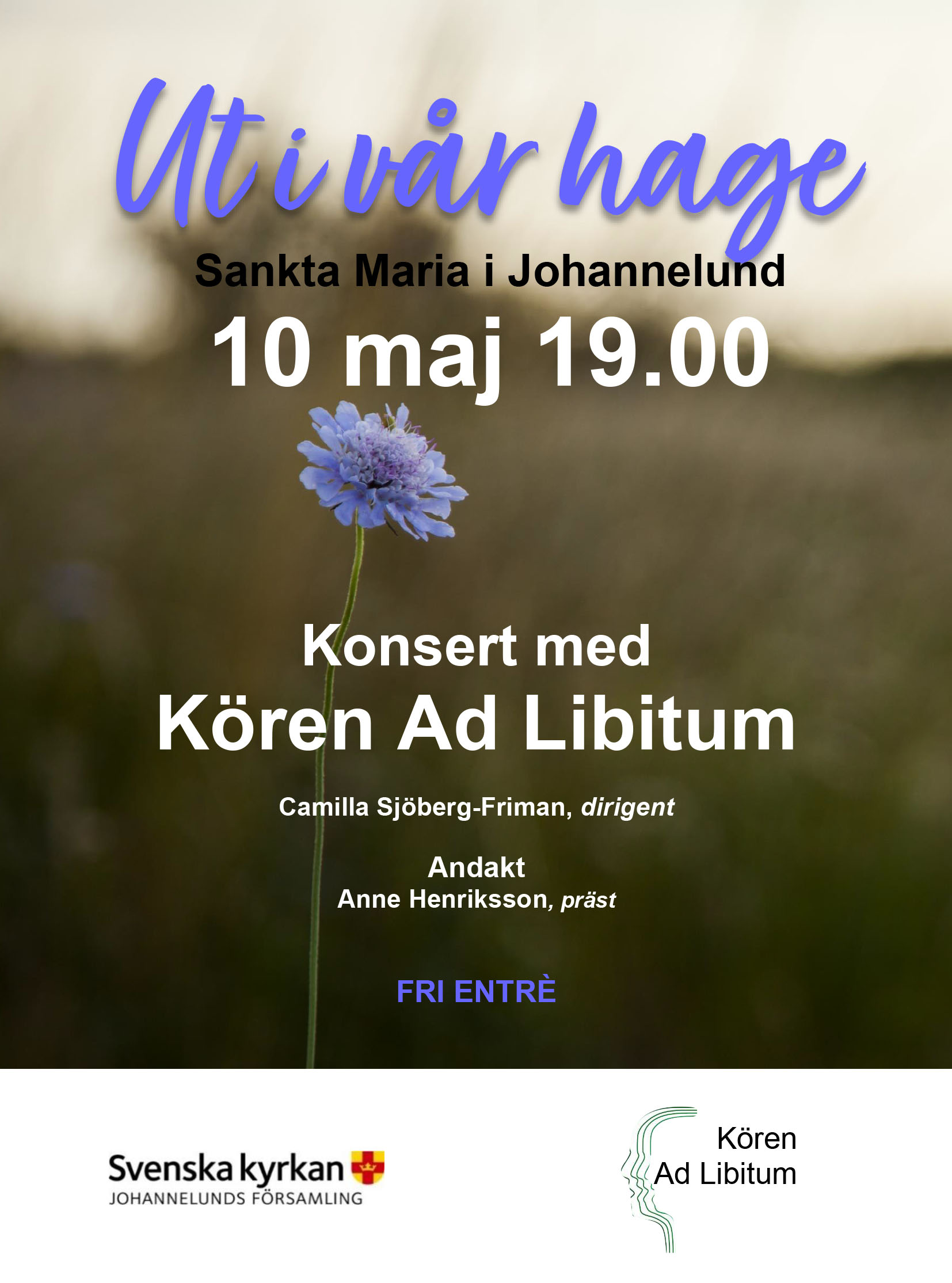 Equmeniakyrkan, Linköping DirigentCamilla Sjöberg Friman Biljetter200 kr Köp via denna länk: www.billetto.se eller i Equmeniakyrkan: tisdag 21/5 och torsdag 23/5 kl 12-14 Ev resterande biljetter säljs i entrén från kl 17.30